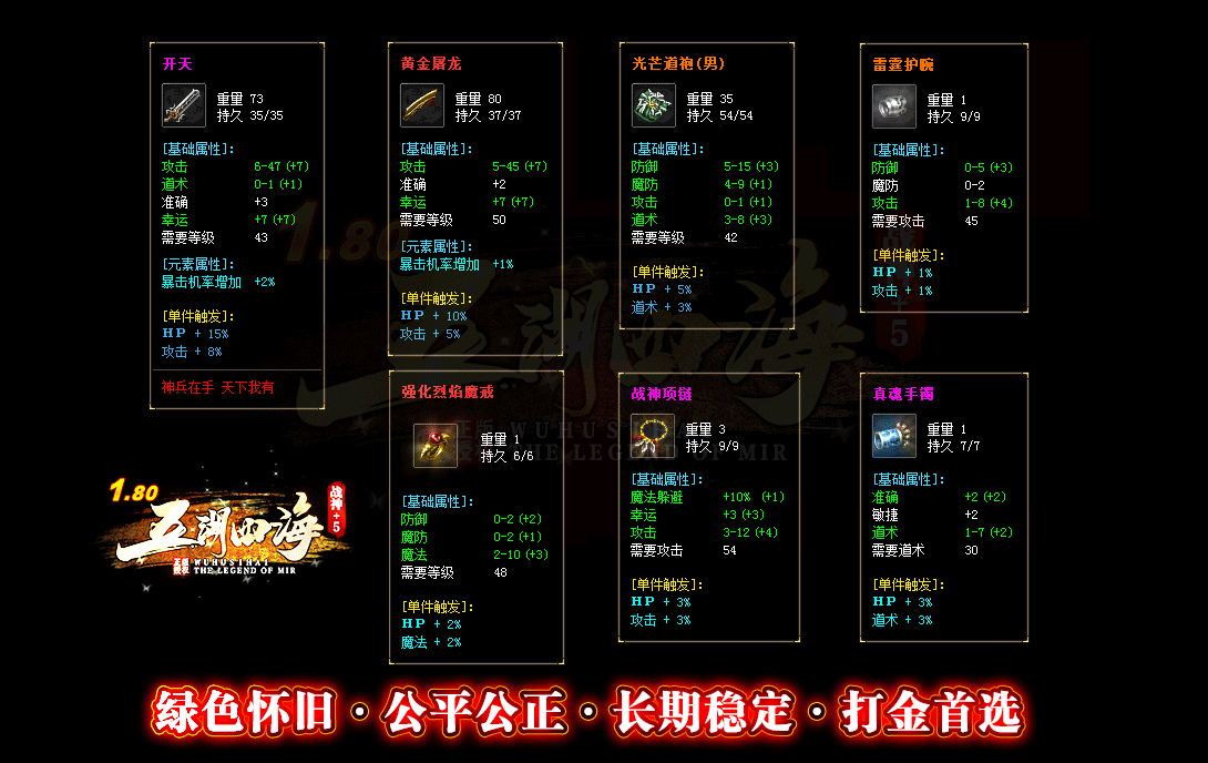 【版本介绍】:1.80战神小极品+5,货币只有元宝,装备靠打BOSS