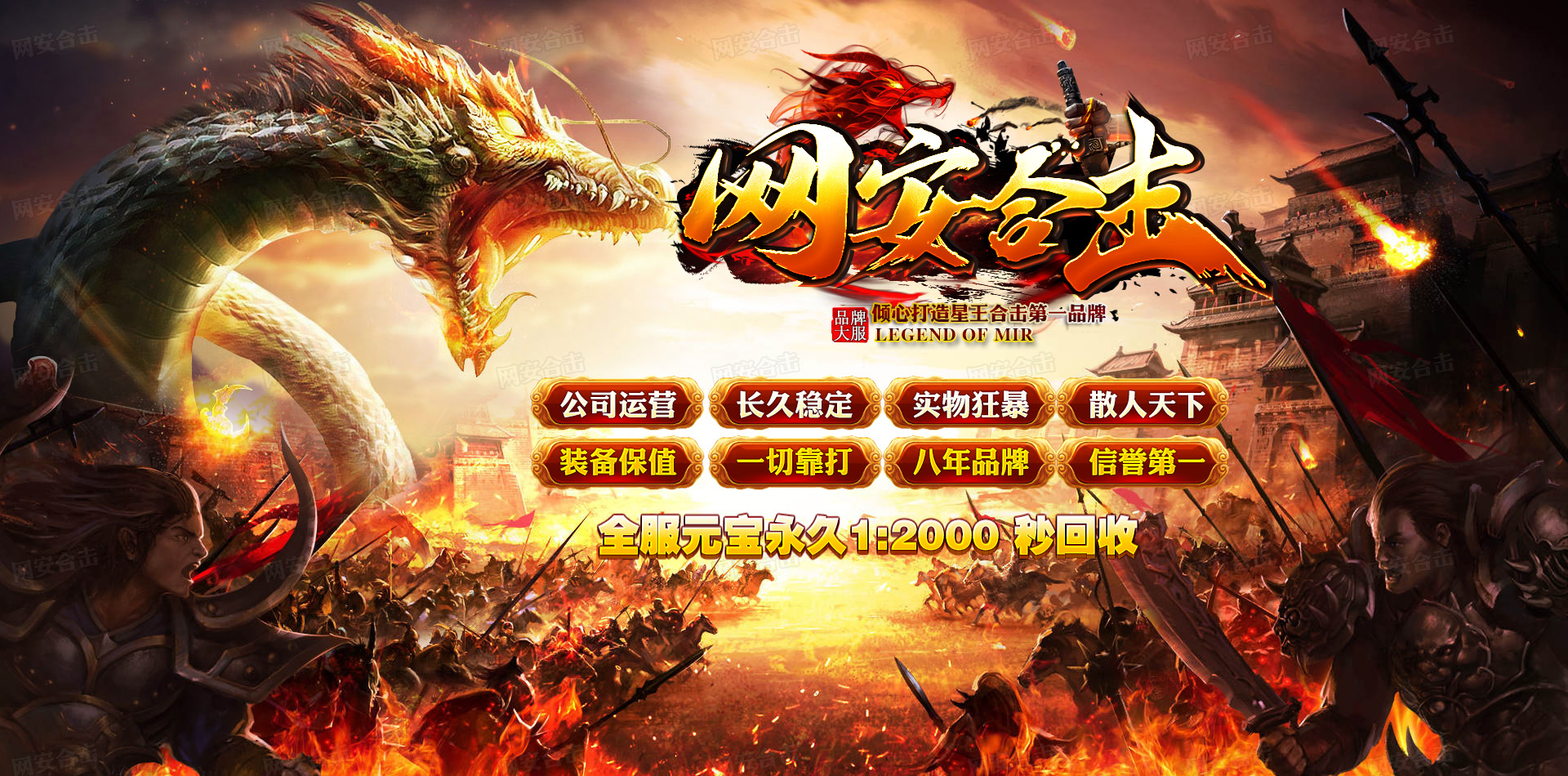 网安合击 星王+2 致力打造全网第一人气合击大服 信誉保障 打金首选