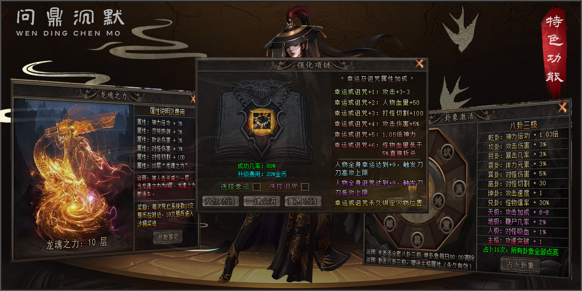 ★【版本特色】集沉默、专属、剧情、神器等多元玩法于一身,复古不变态,地图丰富、BOSS挑战不断,经典与创新兼备。
