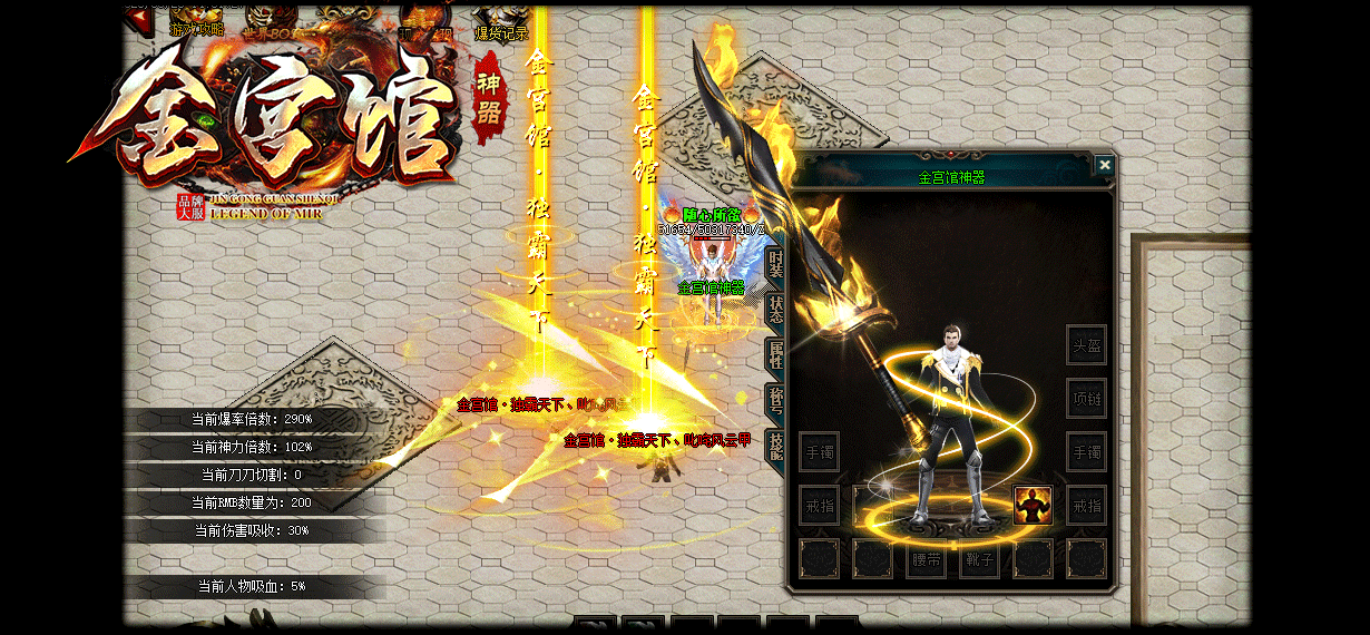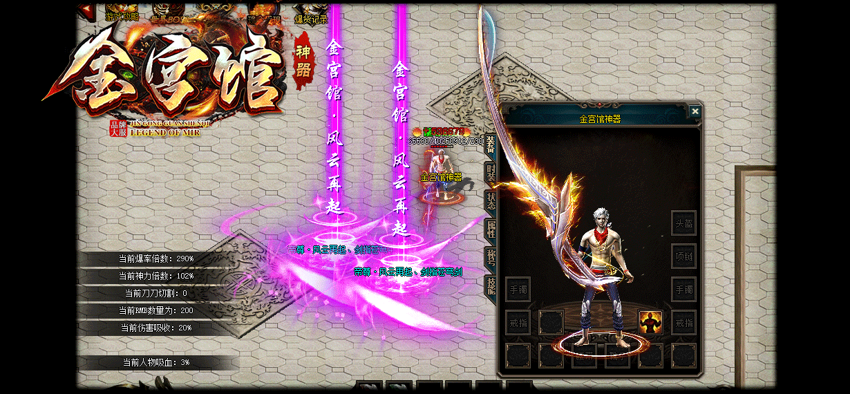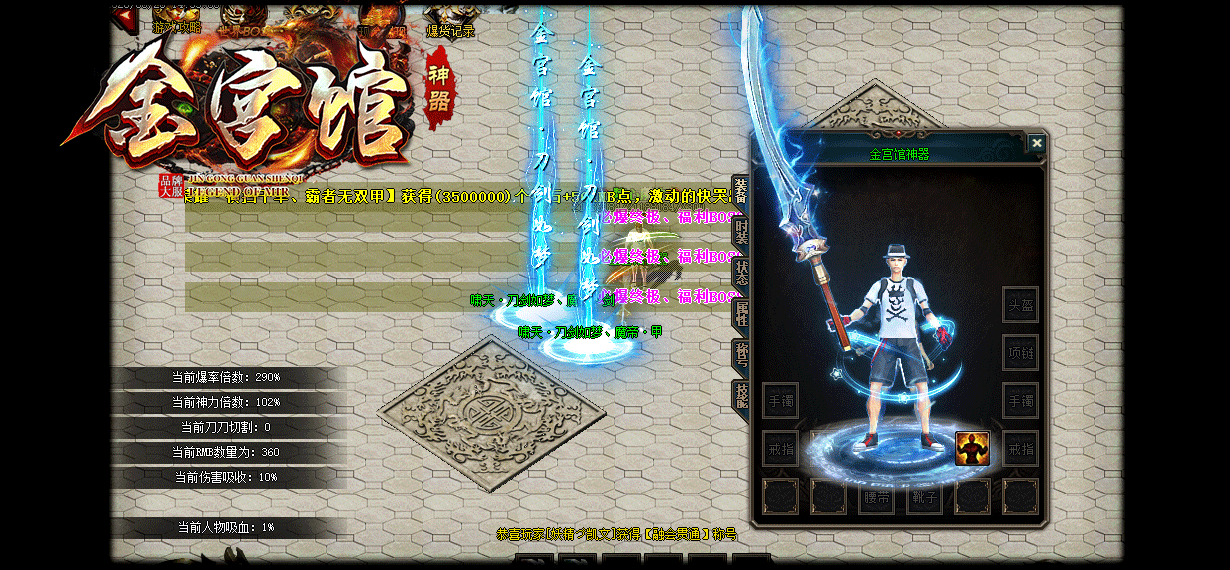 - 【版本说明】金宫馆神器版本定位大众消费,致力于长久稳定激情大服。人人可打金