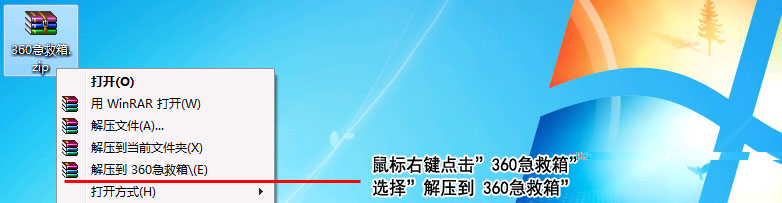 1.点击下载链接:http://www.360.cn/jijiuxiang/下载【360急救箱】到桌面。鼠标右键点击“360急救箱”,选择“解压到360急救箱”。