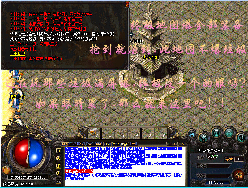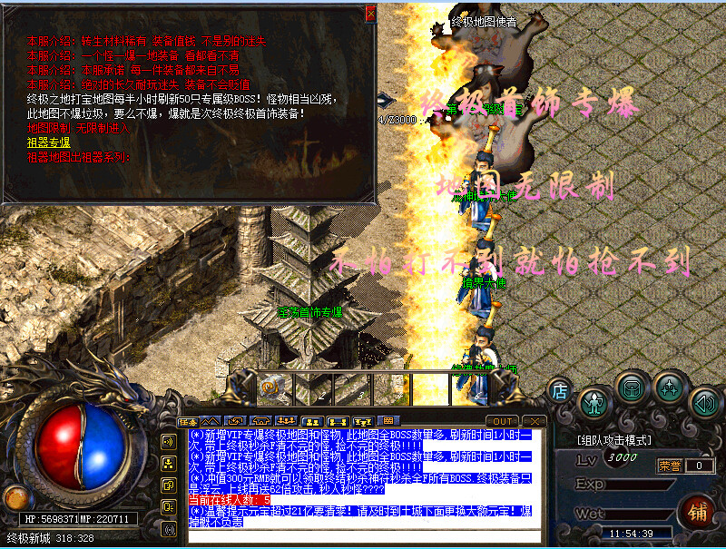 游戏介绍⑦ >>本服散人上线就送超级宝宝一只!让你免去上服打不动怪物的烦恼!本服上线带泡点功能!让你升级如飞!