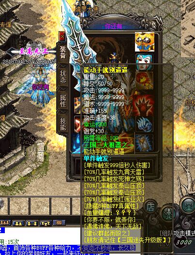 游戏介绍④ >>本次更新三八把【祖器】能动手就别逼逼999倍神力,杀人越货必备神器,8种超级绚丽BUFF让PK激情无限,更多精彩等你上服体验